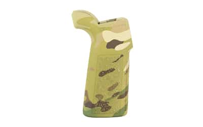 The B5 Systems P-Grip 23 in MultiCam is an AR-platform rifle grip designed to improve ergonomics through an increased vertical grip angle and an extended tang to support proper trigger index. The grip features an aggressive texture for enhanced retention and accepts B5 Systems grip plugs. It is produced in the United States and is intended for use as a replacement or upgrade on compatible AR-style rifles.