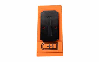 - The plate accepts RMR, SRO, and Holosun-pattern footprints for compatible red dot optics.