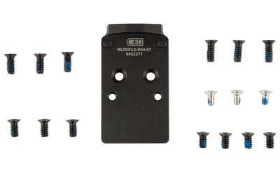 The C&H Precision optic plate adapts Walther PDP 2.0 slides to accept RMR-pattern optics. It is precision machined in Coastal Georgia on HAAS CNC machines and features a patented stainless steel T‑Nut for industry-leading thread engagement. Mounting hardware is serviceable and replaceable, and the plate is finished in matte black for a low-reflective profile.