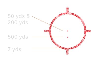 - The reticle is a 68 MOA ring with two 1 MOA center dots for versatile aiming options.