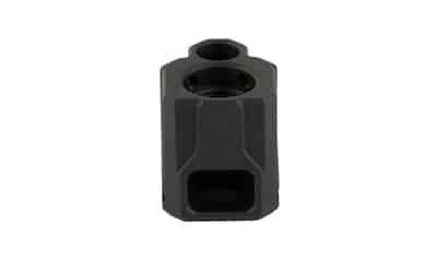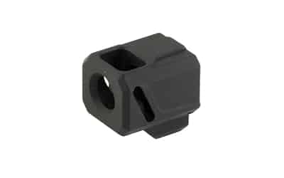 Faxon Firearms compensators are designed for Glock Gen 3 and Faxon Firearms FX-19 pistols. Fitment with other pistols or generations cannot be guaranteed. Constructed of 6061 Aluminum with a black anodized finish, Faxon Pistol Compensators feature a uniquely angled front port single chamber design, enabling the compensator to improve consistency while reducing muzzle climb and recoil. The angled ports allow gas to deflect upwards as opposed to only deflecting sideways, reducing up and down muzzle movement and improving reliability. Barrel protrusion is designed to fit flush with the slide and has been optimized for Faxon branded barrels. For all other barrels, the barrel should protrude .600" or less for a flush fit. Each compensator comes complete with thread locker, two 6-32 set screws, and a 1/16 Allen wrench.
