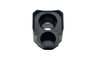 Constructed of 6061 Aluminum with a black anodized finish, Faxon Pistol Compensators feature a uniquely angled front port single chamber design, enabling the compensator to improve consistency while reducing muzzle climb and recoil. The angled ports allow gas to deflect upwards as opposed to only deflecting sideways, reducing up and down muzzle movement and improving reliability. Barrel protrusion is designed to fit flush with the slide and has been optimized for Faxon branded barrels. For all other barrels, the barrel should protrude .600" or less for a flush fit. Each compensator comes complete with thread locker, two 6-32 set screws, and a 1/16 Allen wrench.