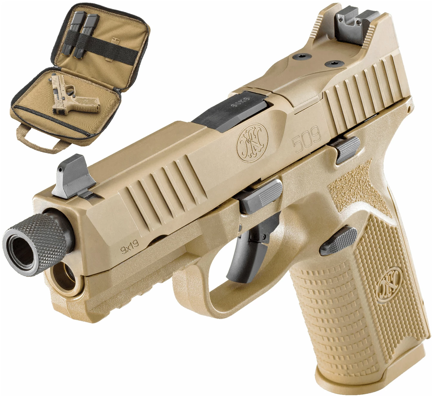 FN 66100373 509 Tactical 9mm Luger 4.50" Threaded Barrel 17+1 Or 24+1, Flat Dark Earth Polymer Frame With Mounting Rail, Optic Cut FDE Stainless Steel Slide, No Manual Safety, Optics Ready