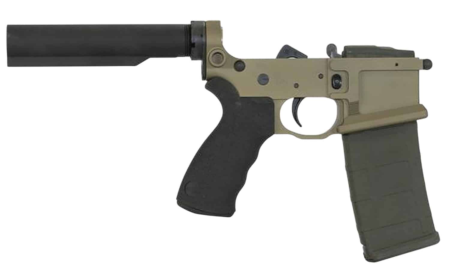 The Franklin Armory Libertas is a built AR-15 lower receiver designed to accept standard AR-15 uppers and components for customer-configured builds. It is machined from 7075-T6 aluminum and finished with a hard-coat anodize. The unit ships with a carbine-length, 6-position collapsible buffer tube installed, but does not include a stock.