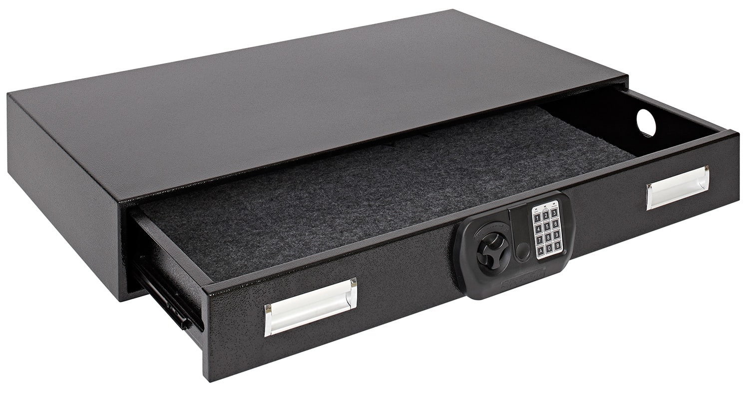 - The internal access is provided by a slide-out drawer suitable for firearms, jewelry, documents, and similar items.