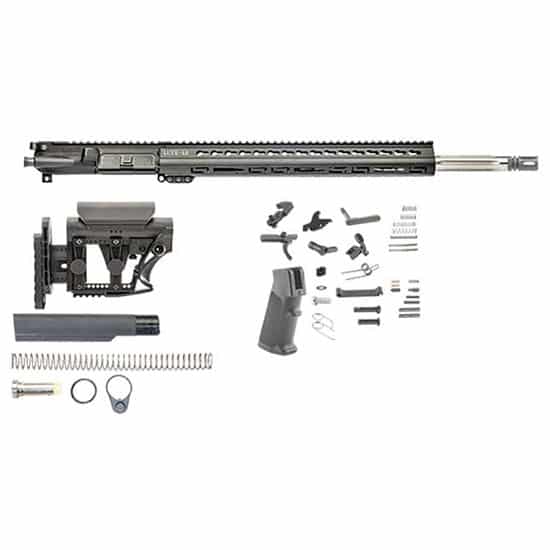 This kit consolidates the core components needed to assemble a reliable rifle platform around a 20-inch fluted bull barrel, offering a straightforward path for a builder who supplies a compatible Mil-Spec stripped lower. With the choice of fixed or adjustable buttstock assemblies and an assembled upper and bolt carrier group, the kit streamlines build time while preserving flexibility for finishing and accessorizing. It is well suited for shooters seeking a stable, rifle-length gas system and the added mass of a bull barrel for consistent handling and sustained shooting applications.