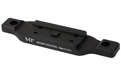 The Midwest Industries Benelli M4 T2 Mount provides a dedicated Aimpoint T2-compatible mounting solution for Benelli M4 shotguns. It is constructed from 6061 aluminum and finished with a hard coat anodize for durable, long-term service. The mount features a pivoting design that allows the optic to be stowed for compact storage and reuses factory M4 rail screws or specified Benelli hardware. Optic mounting screws are included for installation.