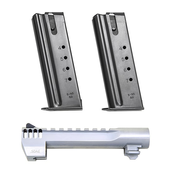 Designed for owners seeking a factory-style .50 AE option for the Mark XIX platform, this assembly combines a purpose-built 6-inch barrel with matched magazines to simplify conversion or replacement. The carbon steel barrel and finished surfaces provide a durable, serviceable component set appropriate for range and precision use.
