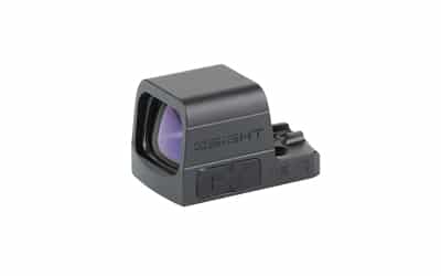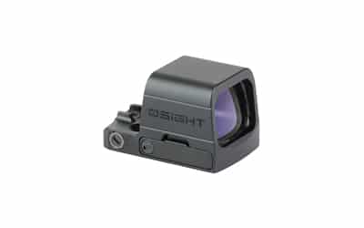 The OSIGHT SE is a compact red dot sight engineered for fast target acquisition and consistent operation in a range of environments. It features a sealed optical system and an aspherical lens design that deliver clarity and parallax-free performance through a large viewing window. Power is supplied by an easily accessible CR1620 battery via side-mounted access so routine battery changes do not require removal of the optic. The SE is designed for RMSc footprint applications and presents a 6 MOA green dot reticle at 1X magnification.
