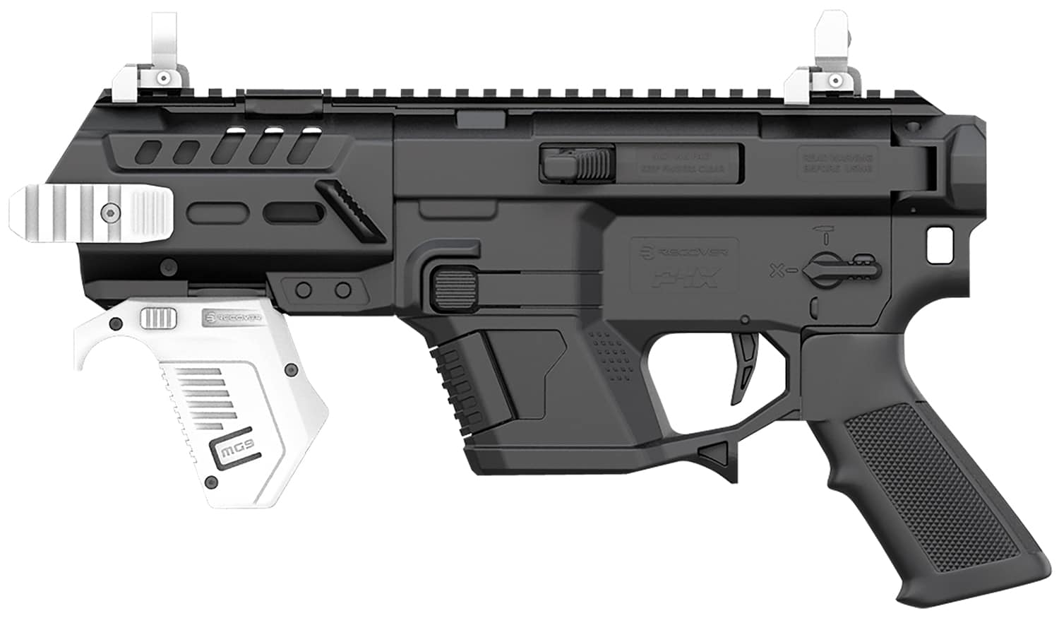 Convert your pistol into an AR Platform with the Recover Tactical P-IX. The system is compatible with all AR modular accessories including pistol grips, buffer tubes, stocks, flip up sites etc. Features: AR Ergonomics, Quick & easy gun installation, Uses standard AR accessories, Compatible with multiple Glock models (see the fit chart below), Safety selector, Adjustable trigger, Multiple picatinny rails, Made with glass-reinforced polymer