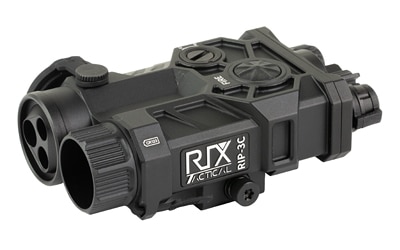 The Rix Optics RIP-3C is an all-in-one visible/IR laser and illuminator designed for use on standard Picatinny (M1913) rails. It features a lightweight aluminum housing and operates on CR123A batteries. The unit offers both a visible green laser and IR outputs, plus a built-in IR illuminator for use with night vision devices.