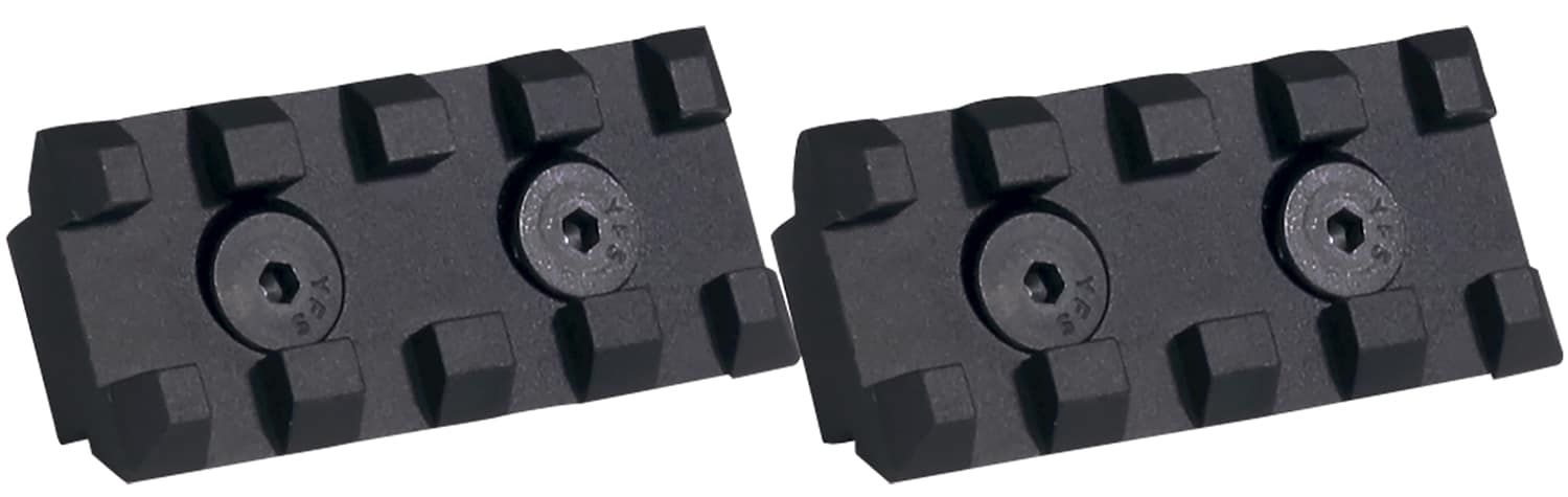 Here's a high-quality rifle accessory every can use! Sometimes all you need is a small, rock-solid anchor point, and if your rifle add-on clamps to a Pic rail, this'll do the trick. Evolution Accessory Rails can be added or removed at any of 7 positions around the Evolution Series rail and also any place along the length of the tube. Compatible with Evolution Series only and RTR Series. 2" Accessory rail kit includes two rails, 4 slots per unit.