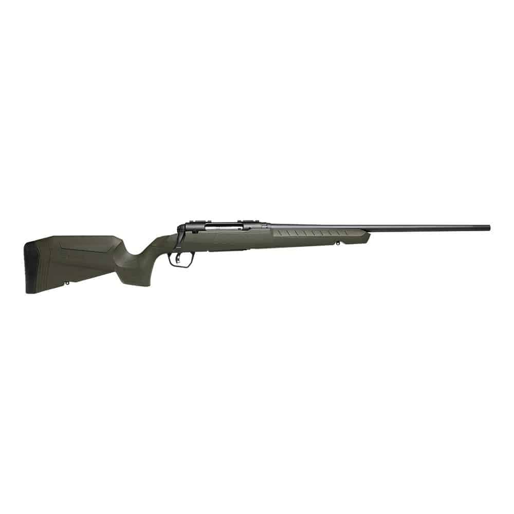 The Savage Axis 2 is a bolt-action rifle chambered in .22-250 Remington that pairs practical field handling with factory-installed accuracy features. It ships with a 22-inch sporter barrel and a fixed green synthetic stock shaped for comfortable carry and shooter control. The rifle includes a user-adjustable AccuTrigger and a matte black, drilled-and-tapped steel receiver for optic mounting.