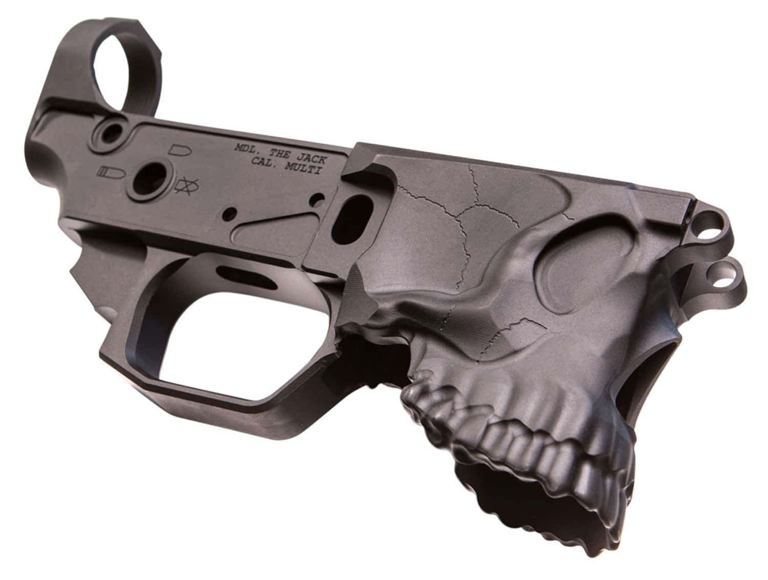 The Sharps Bros The Jack Gen2 is a billet-stripped lower receiver intended for AR-15 platform builds. It is CNC machined from 7075-T6 aluminum and finished with a black hardcoat anodize for durable surface protection. The design is multi-caliber marked and engineered to accept standard mil-spec internal parts and commonly used magazines.