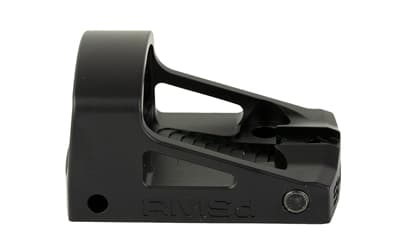 The SHIELD SIGHTS RMSd Reflex Mini Glass Edition is a compact, parallax-free red dot sight with a 4 MOA reticle designed for close‑to‑mid range use. It features an upgraded, scratch‑resistant ultra‑clear glass lens and improved electronics with reinforced battery contacts. The sight body is constructed from aerospace‑grade aluminum with an anodized matte black finish and includes a side‑accessible battery drawer for tool‑free battery changes.