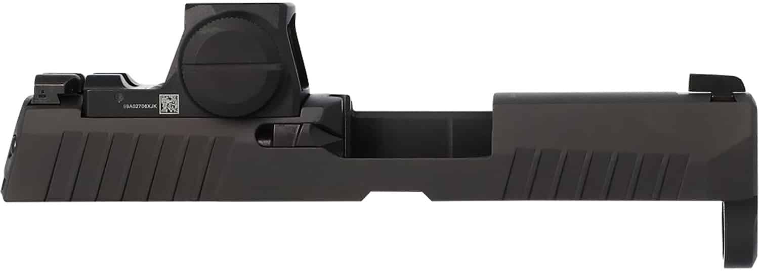 - The assembly is configured for a low-profile slide-mounted reflex optic per product information.