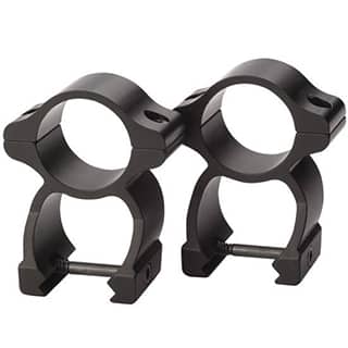 The Traditions See-Thru Scope Rings (Model A1367) are detachable, blued rings designed to accept 1" scope tubes and mount on Weaver-style bases. Their see-through configuration lets the shooter retain iron-sight alignment while a scope is mounted or removed. These rings provide a practical solution for routine maintenance and quick changes between optics and open sights.