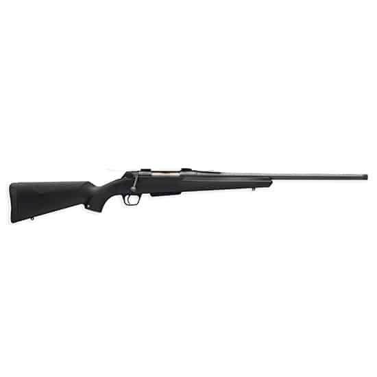 The Winchester XPR SR is a bolt-action sporting rifle configured for modern use with a threaded barrel for suppressors or muzzle devices. It is offered in .223 Rem/5.56 NATO and pairs a 20-inch barrel with a black synthetic stock and an ergonomic Inflex technology recoil pad. The rifle includes a detachable 5-round magazine and a user-adjustable MOA trigger system for practical accuracy in field and range applications.