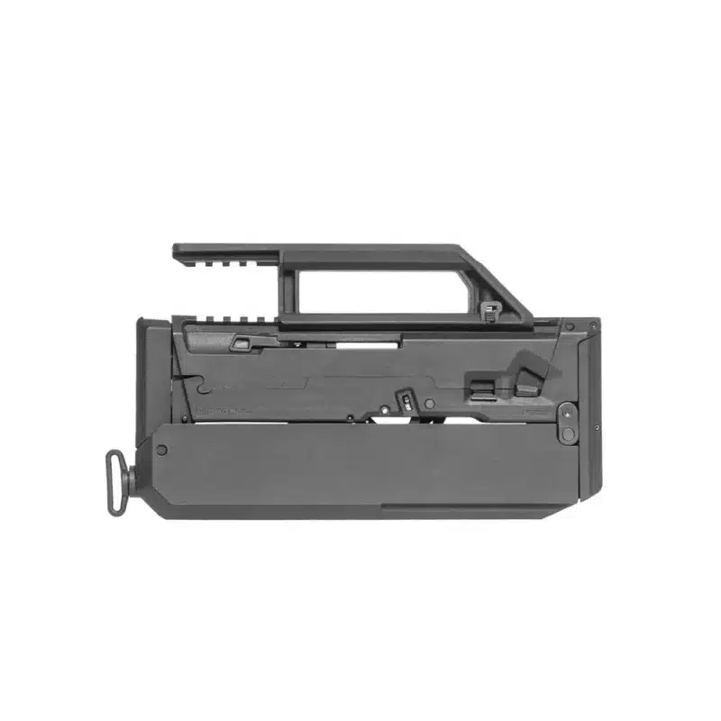 - The folding design is described as a folding stock/chassis that reduces overall length for storage and transport.